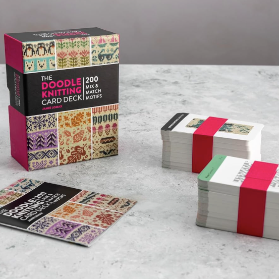 The Doodle Knitting Card Deck by Jamie Lomax, features printed cards of all 200 designs from The Doodle Knit Directory. Knitters will love these 'doodle' cards that readers can play with to create their own personalized colorwork projects. Mix and match the cards to make endless pattern combinations to use in all your stranded colorwork knitting projects.