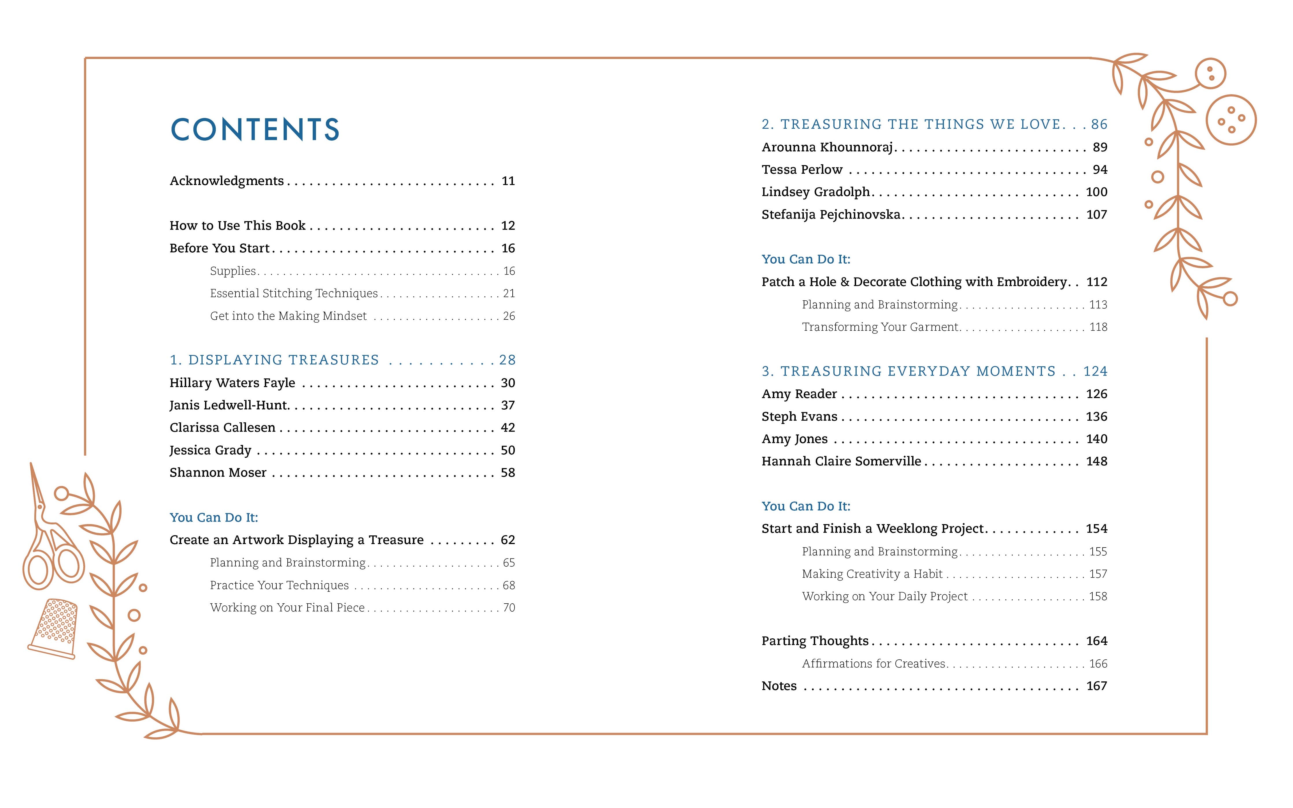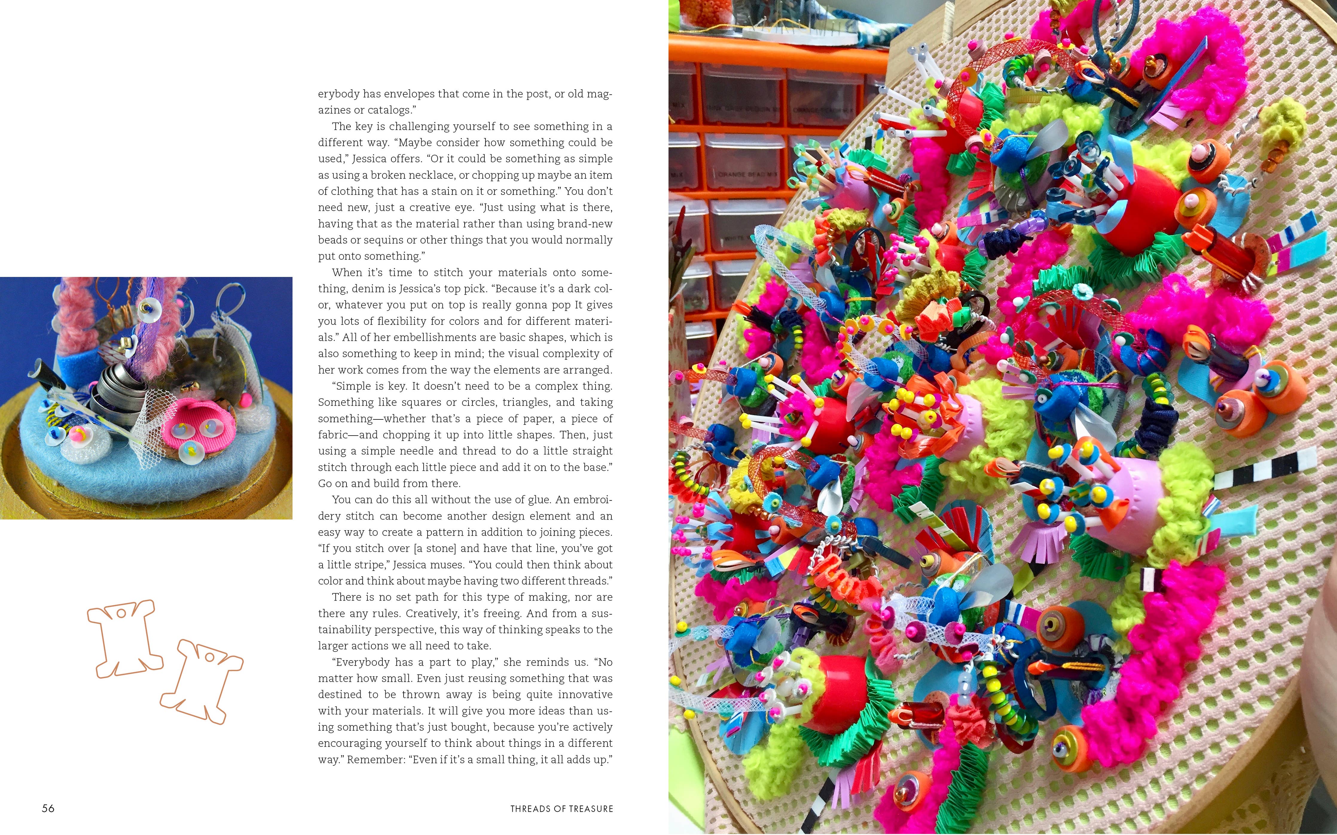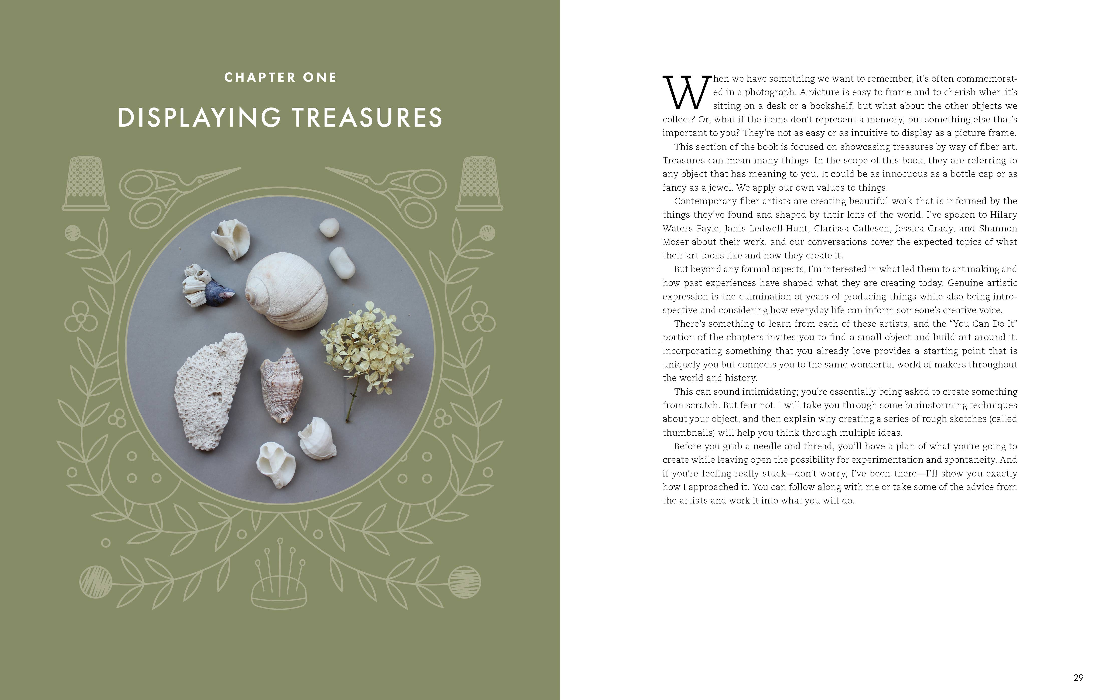 • Three step-by-step projects, personalized to the reader's own preferences, teach how to 1. use your threads to treasure and display your life’s meaningful special objects. For instance, a special token of a favorite moment like a seashell, an event ticket, or a trinket from childhood. 2. use your threads to treasure your worn and well-loved things, like your favorite garment. 3. use your threads to treasure your small everyday moments.