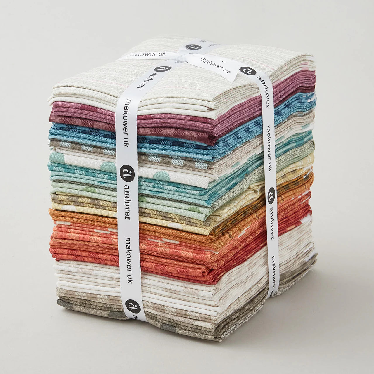 36 Fat Quarters of Laundry Basket Quilts "Quiltessential" fabric collection by Edyta Sitar for Andover. Dots, stripes, and gingham checks in a wide range of colors create a cozy mix that looks fabulous together and is versatile enough to complement many other fabrics, too!